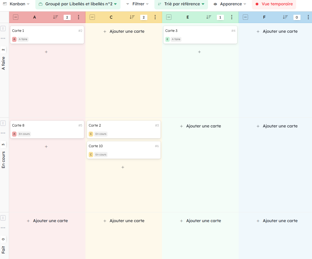 Par défaut, la présentation des valeurs dans la liste est selon le positionnement des colonnes dans la vue Kanban.