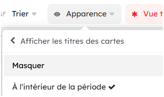 - Vous pouvez afficher les titres des cartes à l’intérieur des rectangles en vous rendant dans Apparence / Afficher les titres des cartes / A l’intérieur de la période.