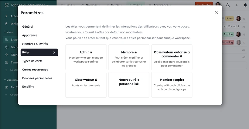 Définissez précisément qui peut voir, modifier ou administrer chaque aspect de vos projets. Créez des rôles personnalisés adaptés à votre organisation pour garantir que chacun a exactement les accès dont il a besoin.