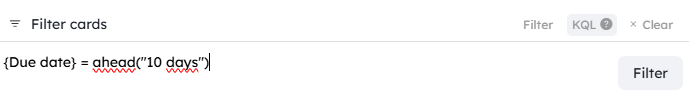 To filter cards that have a due date at D+10