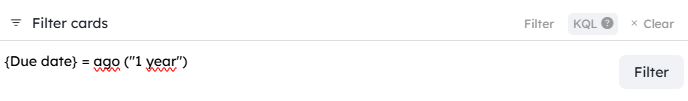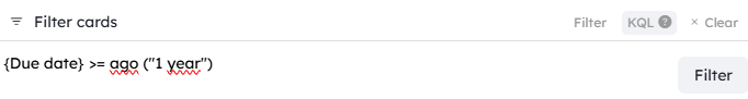 To filter cards that have a due date at D-1 year