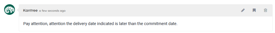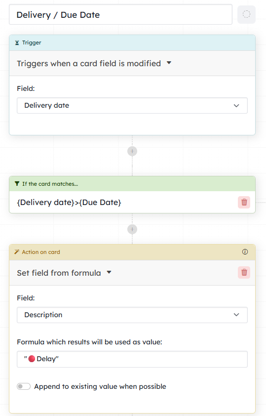 I want a comment to be posted on the card when the Delivery date is later than the Due date (commitment date).