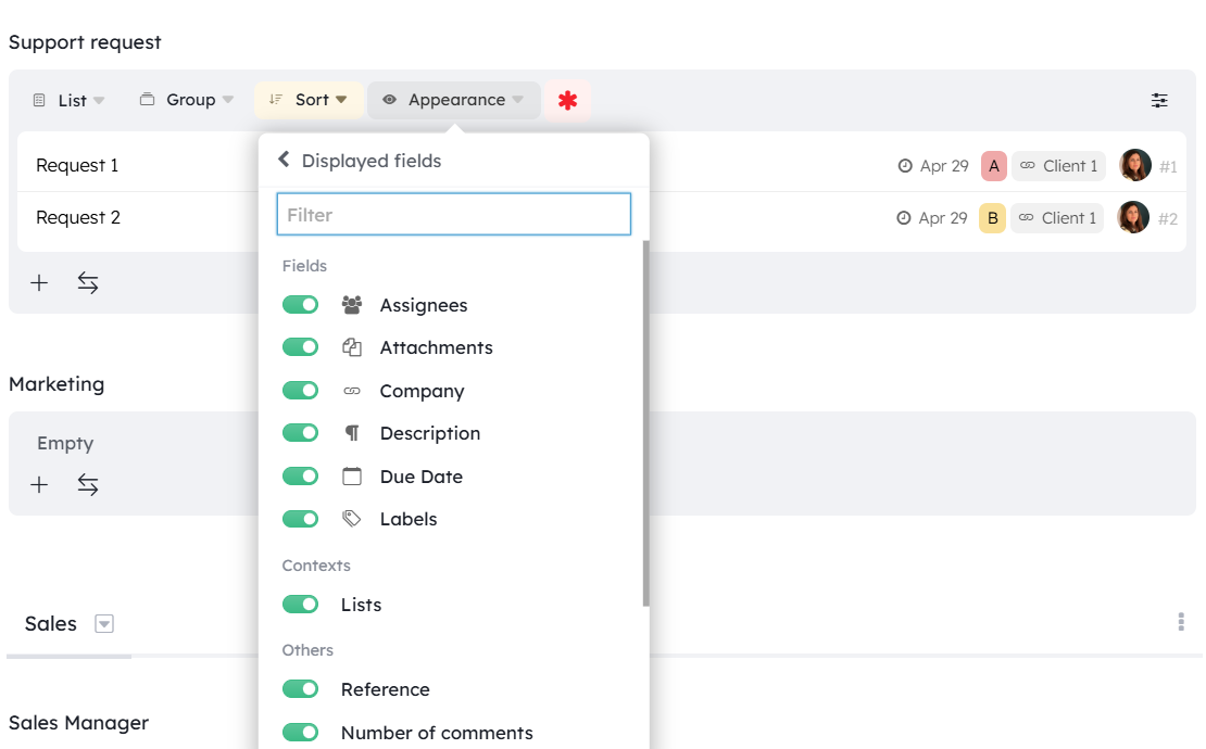 The card relation field has been updated to help you improve the readability of linked cards through appearance customization. Linked cards are now displayed as a view: Kanban, Board, List.